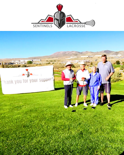 Neal and I along with Jeff and Norm golfed at Thanksgiving Point on Saturday to help raise money for Brock's Lacrosse team. We had such a fun day. Thanksgiving Point is not an easy golf course for women. Very challenging and really long 4 and 5 pars. But between Neal, Norm and Jeff we were able to conquer those long pars with their long drives. Jeff and Norm shared a cart and Neal and I shared the other cart. We were served a continental breakfast before the event began at 9:00 and then served a delicious lunch at the end. Lot of prizes were bid on and awarded. I ended up winning a really nice canvas bag and Norm won the rental of a bounce house. He will love that for his grandchildren. We didn't win a prize for the best score but all four of us won the prize for having the most fun on a gorgeous Fall day! Glad we were able to support our grandson. We love you Brock and good luck with your games this season.